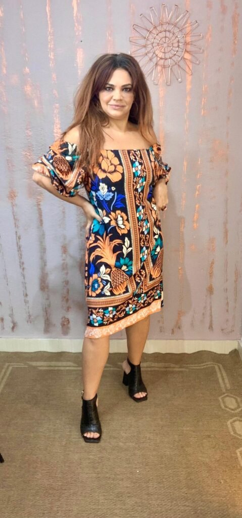 Vestido na cor azul bic perfeito para qualquer ocasião. Com detalhe torcido no ombro, proporcionando elegância e conforto na mesma peça.
